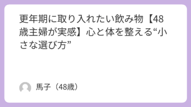 更年期に取り入れたい飲み物【48歳主婦が実感】心と体を整える“小さな選び方”