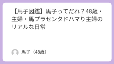 【馬子図鑑】馬子ってだれ?48歳・主婦・馬プラセンタドハマり主婦のリアルな日常